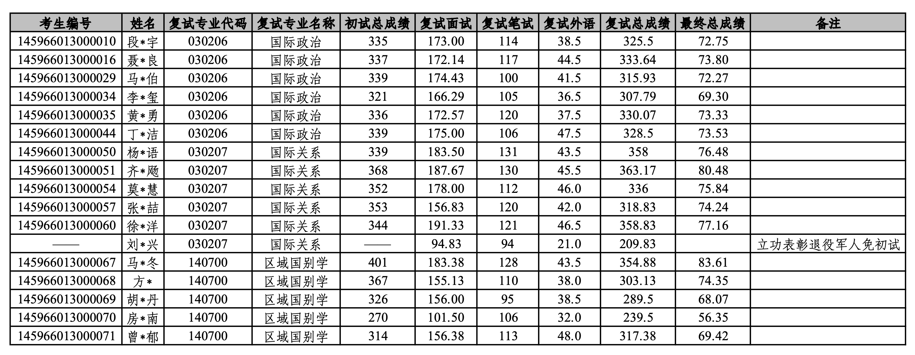 全球与区域国别美女自慰于3月21日组织完成区域国别学、国际政治、国际关系三个专业的硕士研究生招生复试,现将复试结果公布如下:
